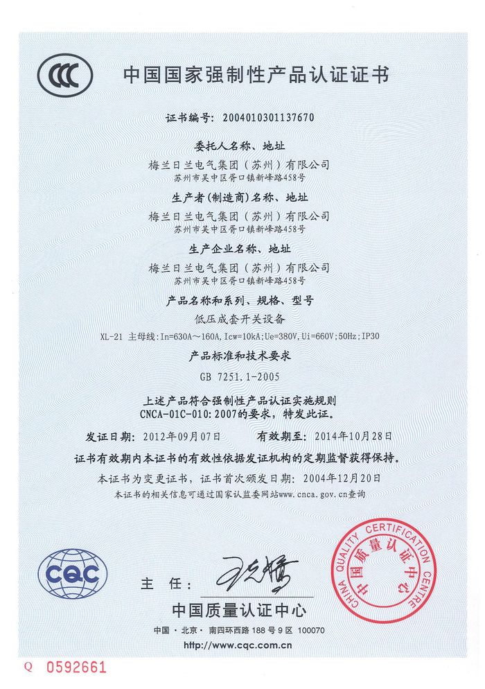 (成套)XL-21主母線(xiàn)資質(zhì)證書(shū)